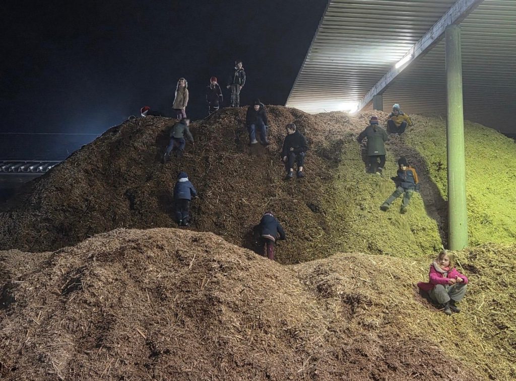 Für die Kinder gab es eine ganz besondere Freude: Sie tobten ausgelassen auf den Hackschnitzelbergen und hatten dabei jede Menge Spaß.